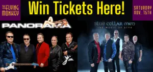 Register below for Front Row seats to Panorama & Blue Collar Men: Tribute to The Cars and Styx at the Flying Monkey Saturday November 15th.