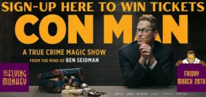 Enter below to win a pair of tickets to Con Man: A True Crime Magic Show at the Flying Monkey in Plymouth on Friday March 20th. Tickets on-sale for this show and more at FlyingMonkeyNH.com.