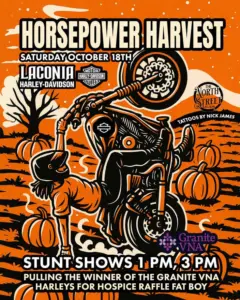 Find out more »Join us for a fall festival like no other! Horsepower Harvest brings together the thrill of motorcycles, the excitement of live stunt shows, and the fun of food, drinks, and live music. Event