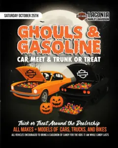 Find out more »Ghouls & Gasoline: Car Meet & Trunk or TreatDate: Saturday, October 25thLocation: Laconia Harley-Davidson Celebrate Halloween with a unique mix of horsepower and Halloween spirit at