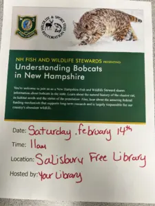 Join us for a talk with a NH Fish & Wildlife Steward all about Bobcats in NH.
